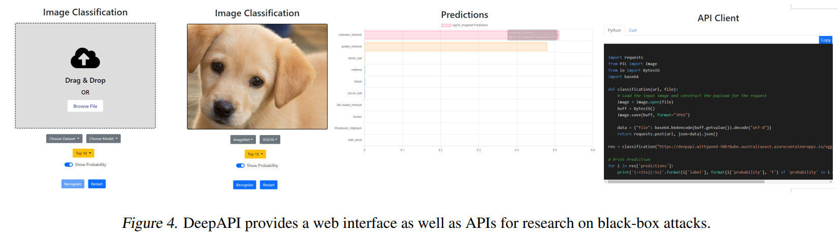 Besides uploading images from the website, we can also use the API to do image classification so that we can automate the query process to initiate black-box attacks.