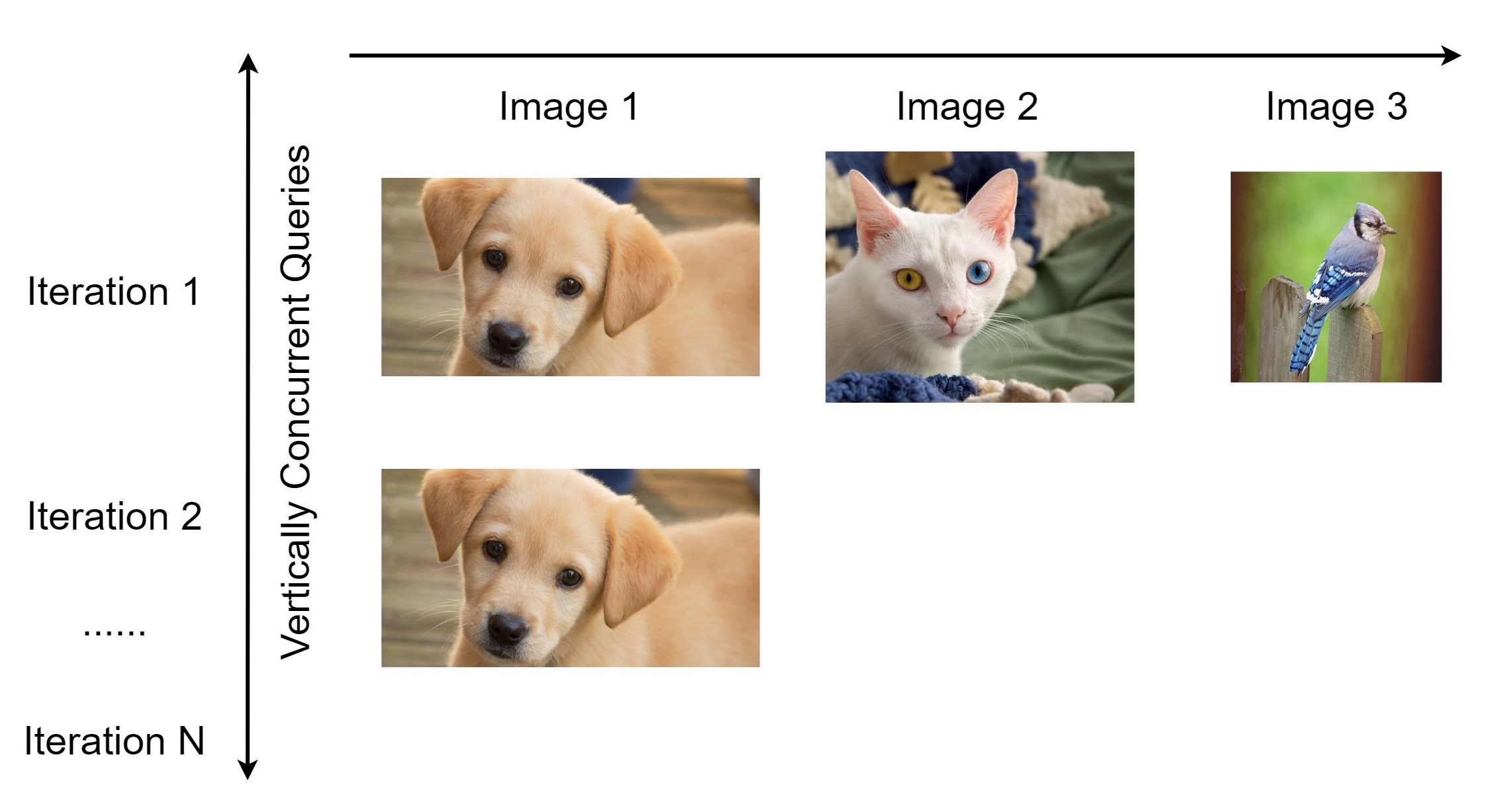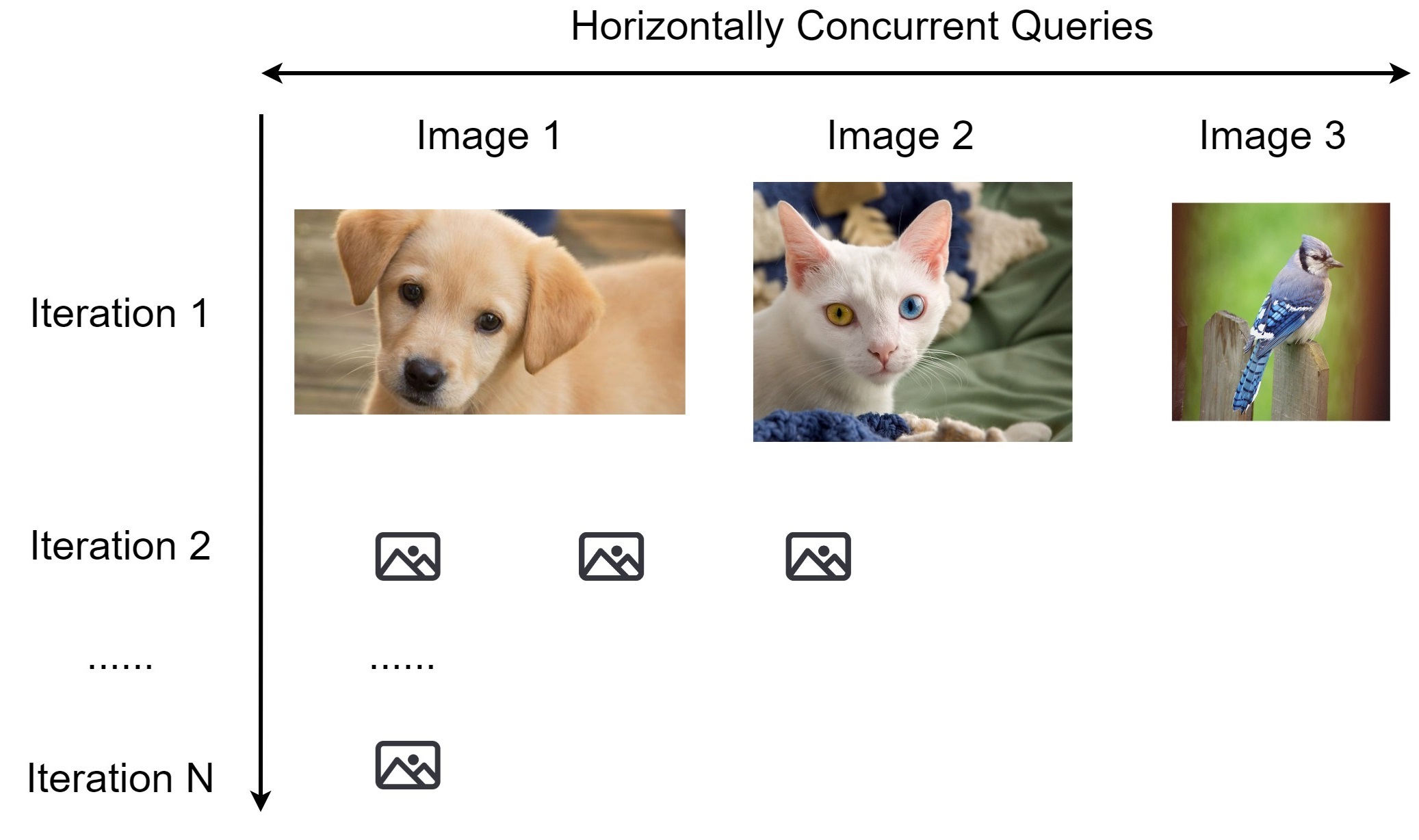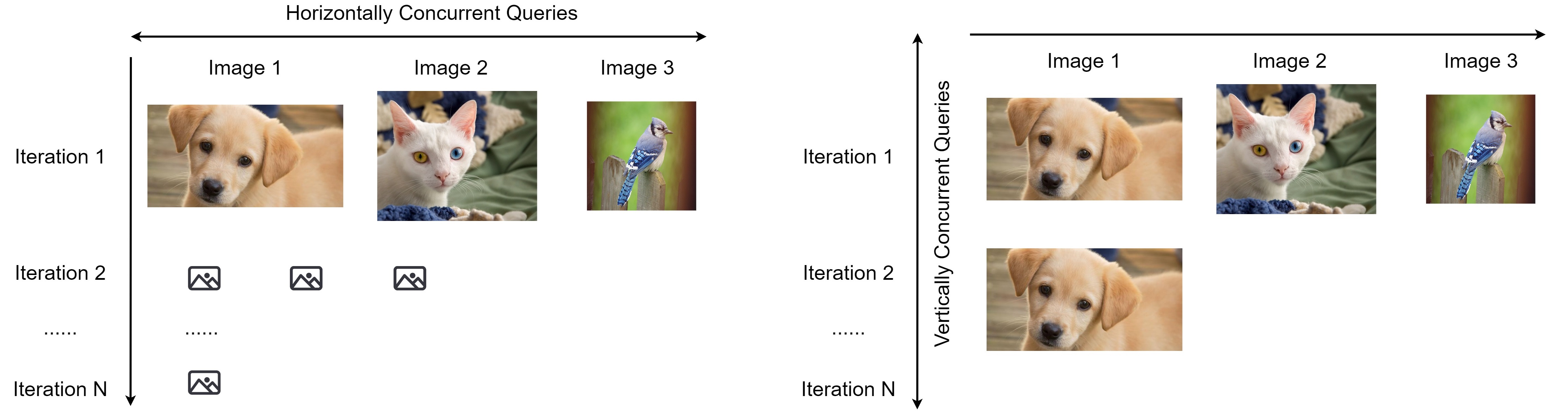 Horizontal Distribuion sends out concurrent queries across images at the same iteration, so we receive the query results for different images simultaneously, and then move on to the next iteration.