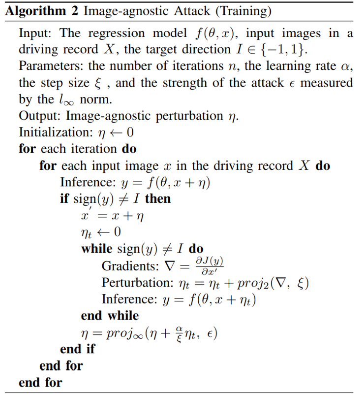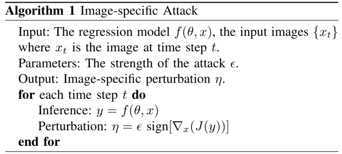 We propose two online white-box adversarial attacks against the end-to-end driving model. We attack the driving model by applying adversarial perturbations to the input image.
