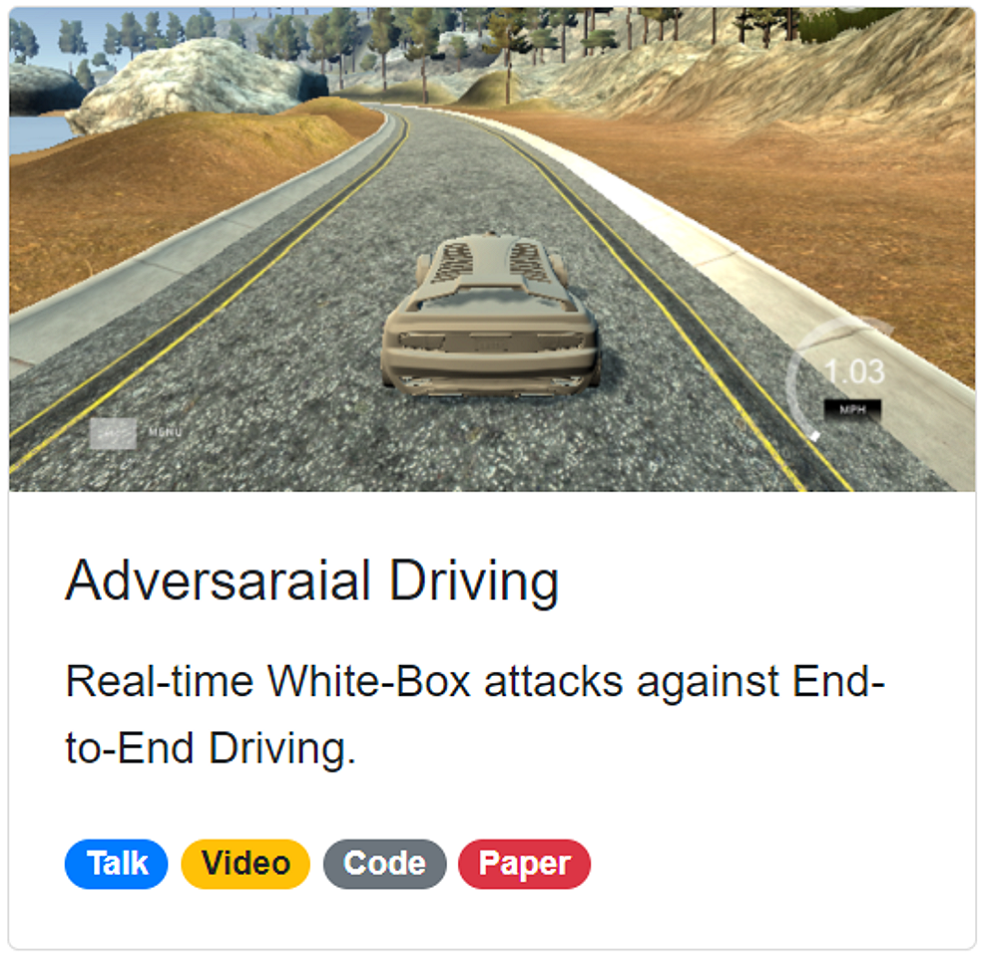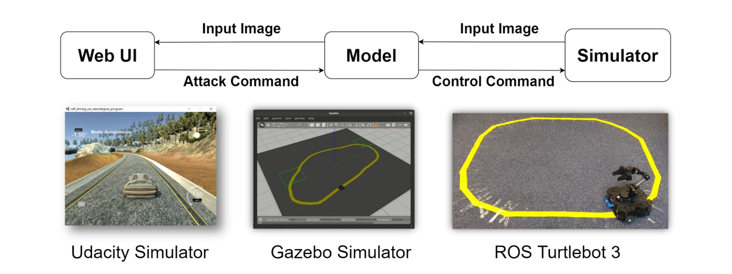 It is unsafe to attack a real autonomous driving car. We first tested our attacks in a autonomous driving simulator. Here we have the NVIDIA end-to-end driving model which was tested on a real autonomous driving car. The driving model takes image from the camera as input and outputs the steering angle directly.