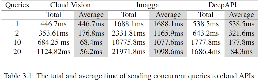 Black-box attacks rely on queries, which is time consuming. Our experimental results demonstrate that sending out 10 queries concurrently takes roughly the same time as sending out 1 query, which means that we can accelerate black-box attacks by sending out queries concurrently. The more queries we send, the less time each query takes in average.