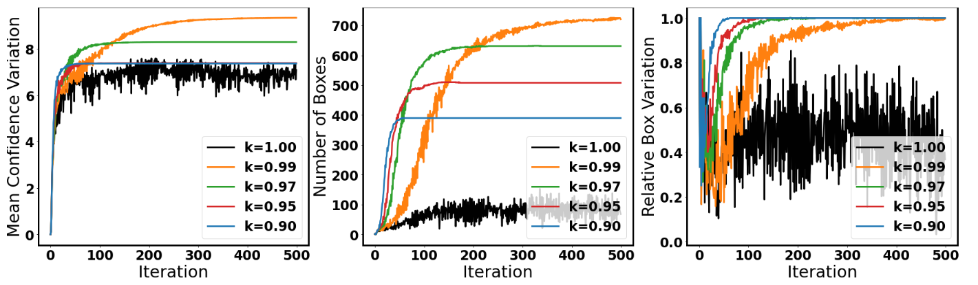 Our method generates more bounding boxes, and have less variation.